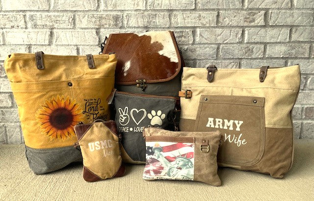 Crossbody, Totes and Backpacks that are sustainable, repurposed and upcycled. Strong, Proud...