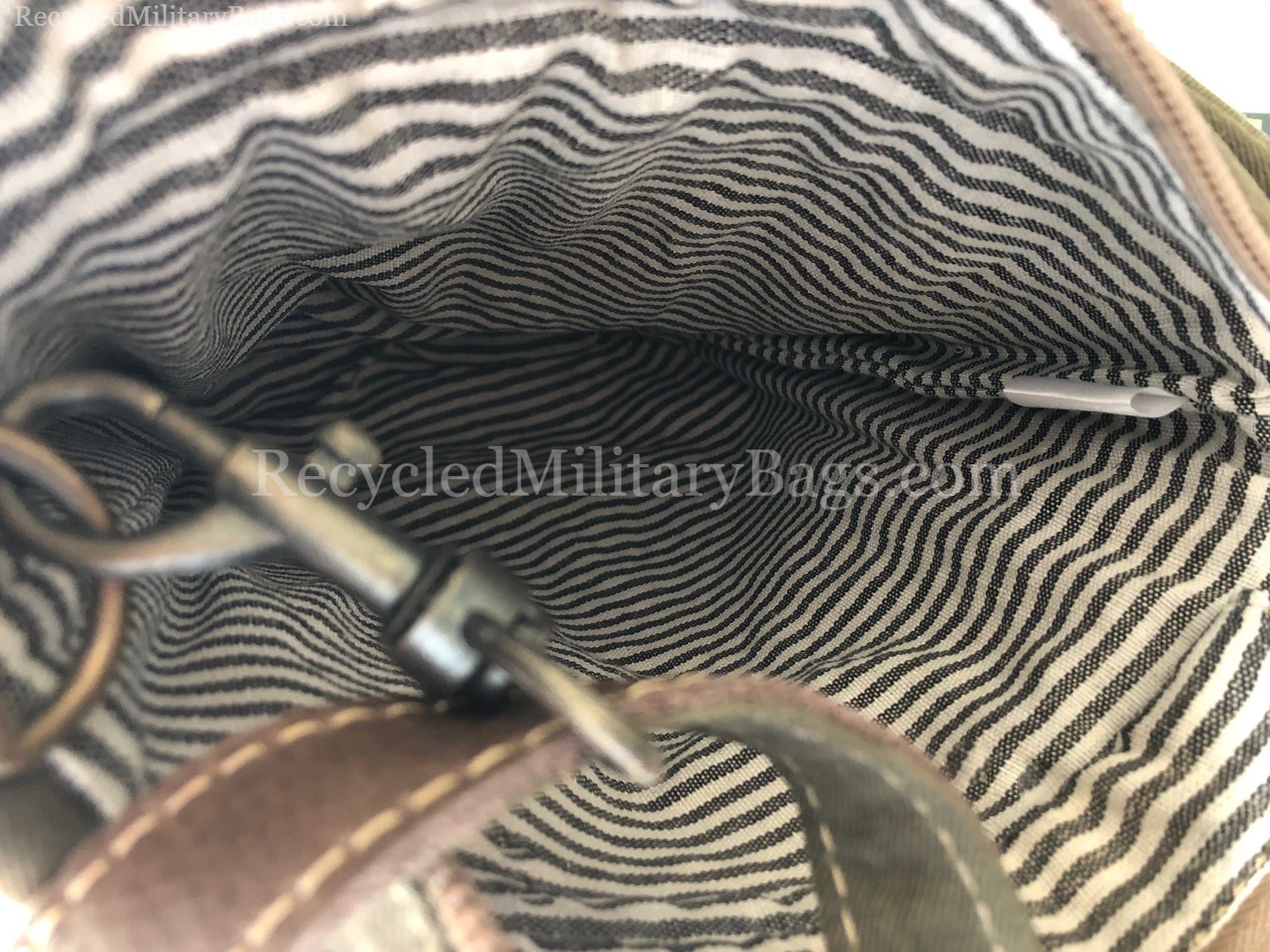 NOTE: Due to the nature of the materials used, there are variations in patterns, colors and imperfections may appear. These are not defects, but are the appeal of the bags being of repurposed and upcycled materials.