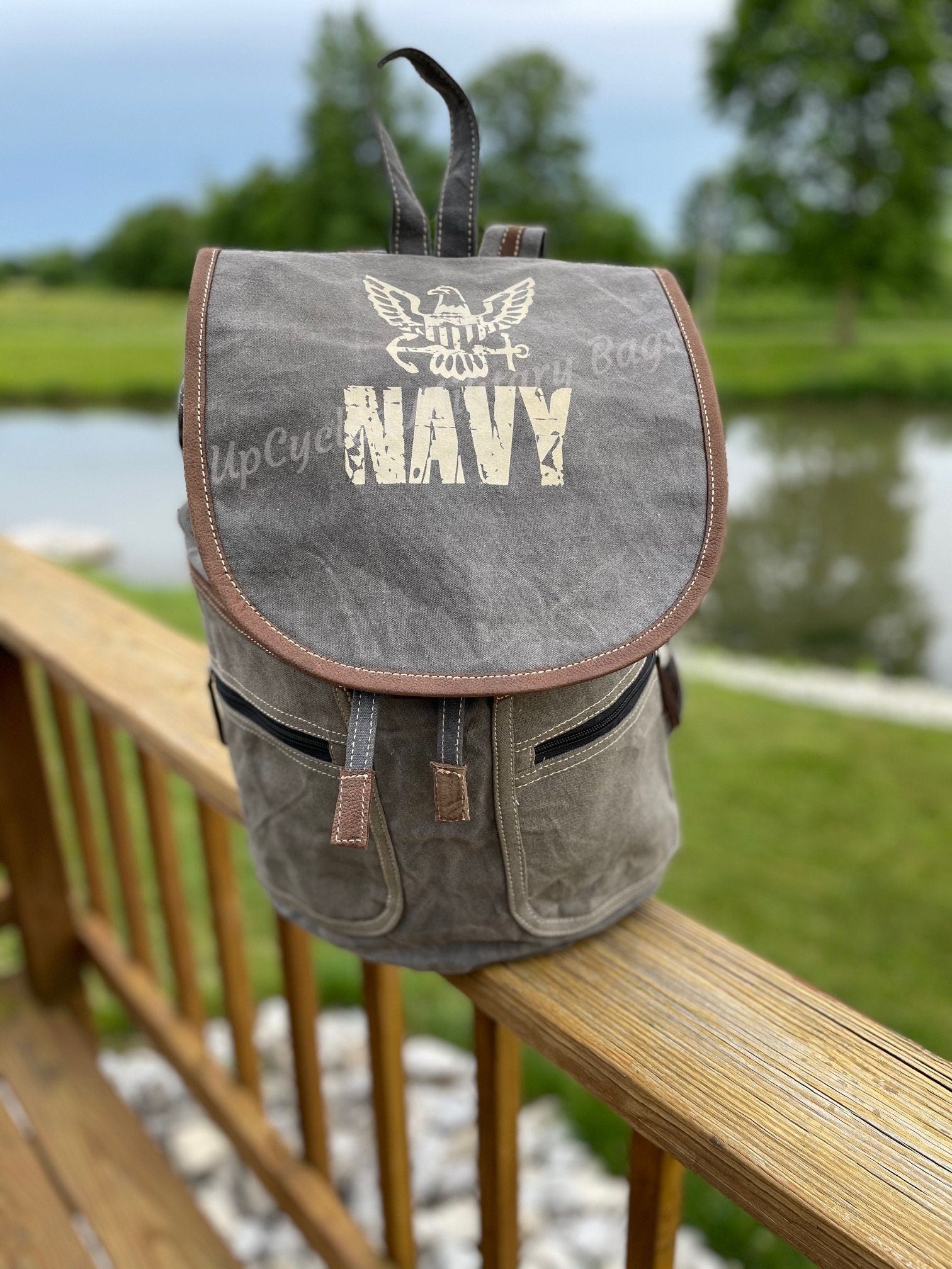 US Navy Large Gray Sustainable Canvas Backpack ~ Perfect Gift for the Navy Proud!